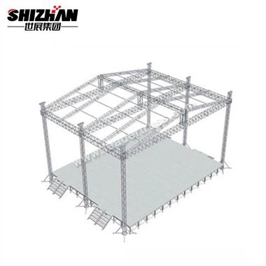 Aluminium scene takstoltak kalles også aluminium scene takstol system, strukturen ble laget av aluminium scene, aluminium truss, led lys, lydhøyttalere og led vegg. Aluminium scene takstol tak brukes vanligvis til utendørs arrangementer, med toppdekselet kan det også brukes i regntiden.
